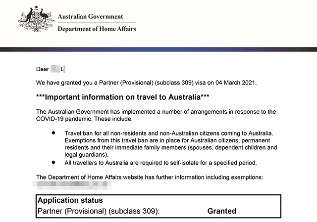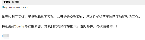 L女士收到309簽證非常開心,并發(fā)來了感謝信,我們在此希望她一切順利!