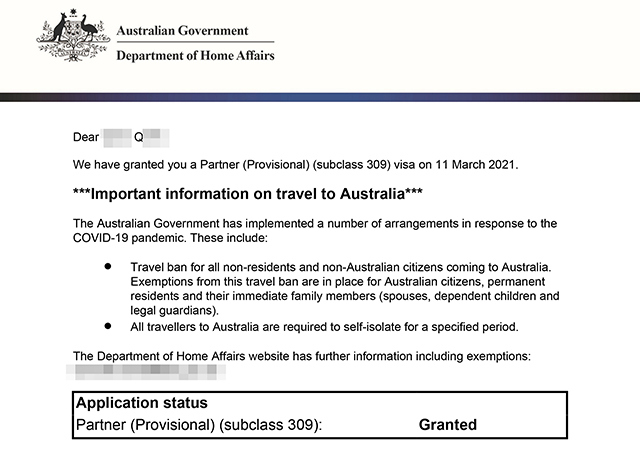 因此,Q女士的婆婆最先找到北京澳星Sunny楊老師咨詢澳洲團(tuán)聚移民時,Q女士和先生已經(jīng)遞交了309簽證申請,但由于材料準(zhǔn)備不充分,遞交后一直沒有消息,最終楊老師根據(jù)Q女士的情況給出補救方案,補充了大量的材料,如關(guān)系證明,戀愛陳述等,由于我們準(zhǔn)備的比較充分,材料提供的也非常全面,因此順利拿到309簽證,一家人特別開心。