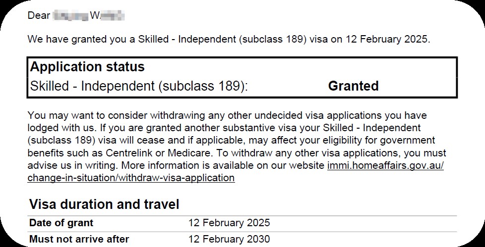 但今天我們要一起慶祝我們的老朋友Wendy于2025年2月喜獲澳洲PR(年僅25歲),下一個會是您嗎?
