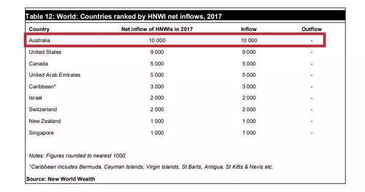 其中,澳大利亞連續(xù)第3年成為全球最受富豪歡迎的國家。根據(jù)這份報告,澳大利亞在2017年一共吸引了1萬名高凈值移民,人均凈資產(chǎn)達100萬美元(約125萬澳元)。