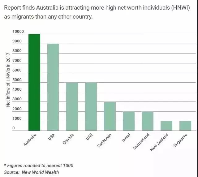 根據(jù)《2018 全球財富遷移報告》(Global Wealth Migration Review)顯示,澳洲連續(xù)三年蟬聯(lián)全球百萬富豪最理想移民地。報告顯示世界財富遷移趨勢已經(jīng)愈發(fā)的劇烈。