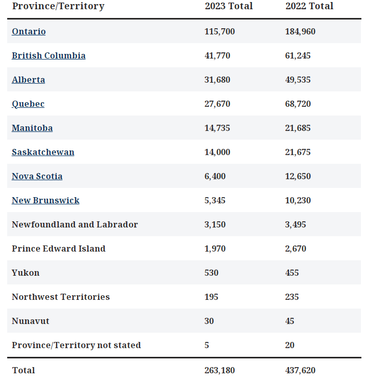 移民部去年制定的2023-2025年移民水平計劃中規(guī)定的年度目標(biāo)是,2023年總共接收46.5萬名新永久居民,2024年為48.5萬名新永久居民,2025年為50萬永久居民。