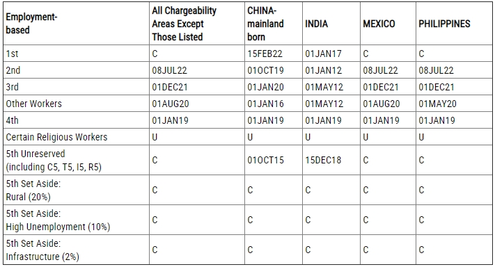 ? EB-1:排期為2022年8月1日,前進(jìn)61天;