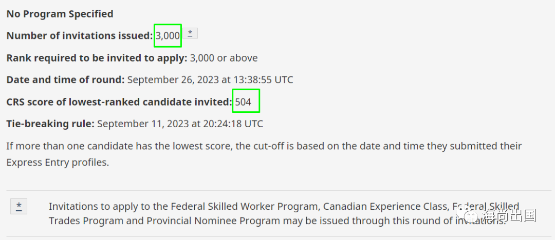 2023年9月26日加拿大聯(lián)邦技術移民快速通道(EE)進行了常規(guī)類抽選,本次常規(guī)類抽選一共邀請3000人,最低邀請分數(shù)為504分。