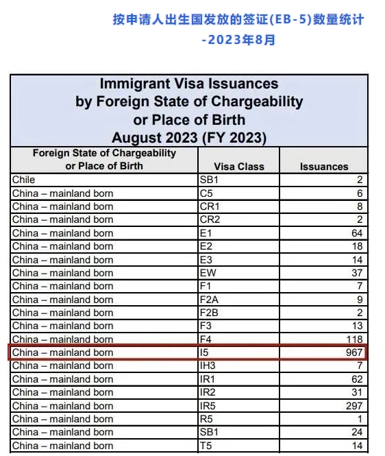 官網(wǎng)鏈接:https://travel.state.gov/content/dam/visas/Statistics/Immigrant-Statistics/MonthlyIVIssuances/AUGUST%202023%20-%20IV%20Issuances%20by%20FSC%20or%20Place%20of%20Birth%20and%20Visa%20Class.pdf