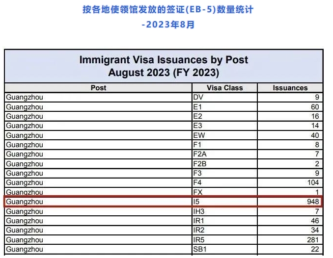 官網(wǎng)鏈接:https://travel.state.gov/content/dam/visas/Statistics/Immigrant-Statistics/MonthlyIVIssuances/AUGUST%202023%20-%20IV%20Issuances%20by%20Post%20and%20Visa%20Class.pdf