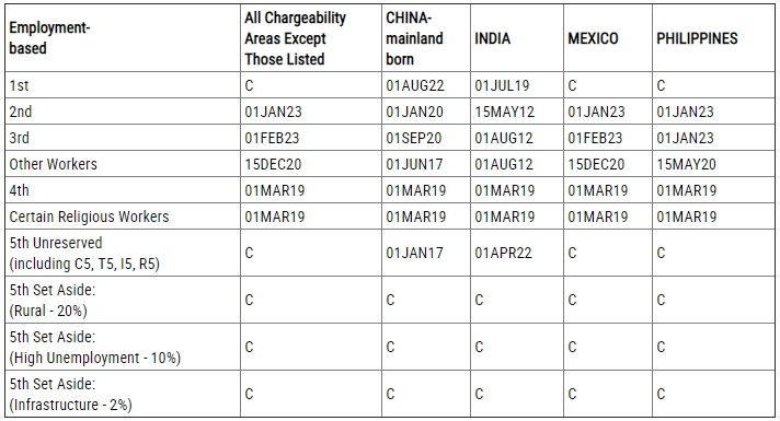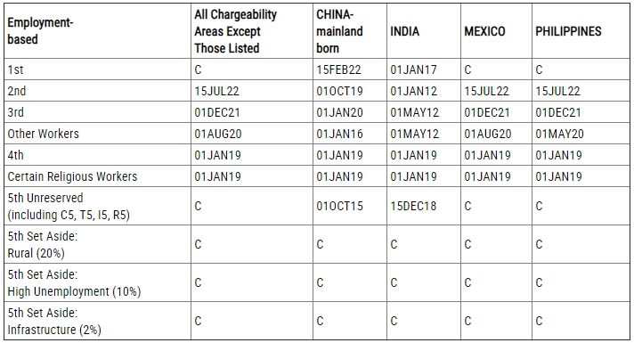 ? EB-5(預(yù)留類(lèi)別:鄉(xiāng)村、高失業(yè)率、基建):無(wú)排期。