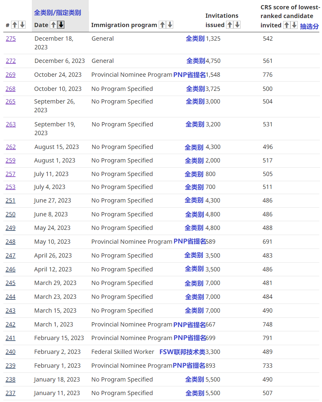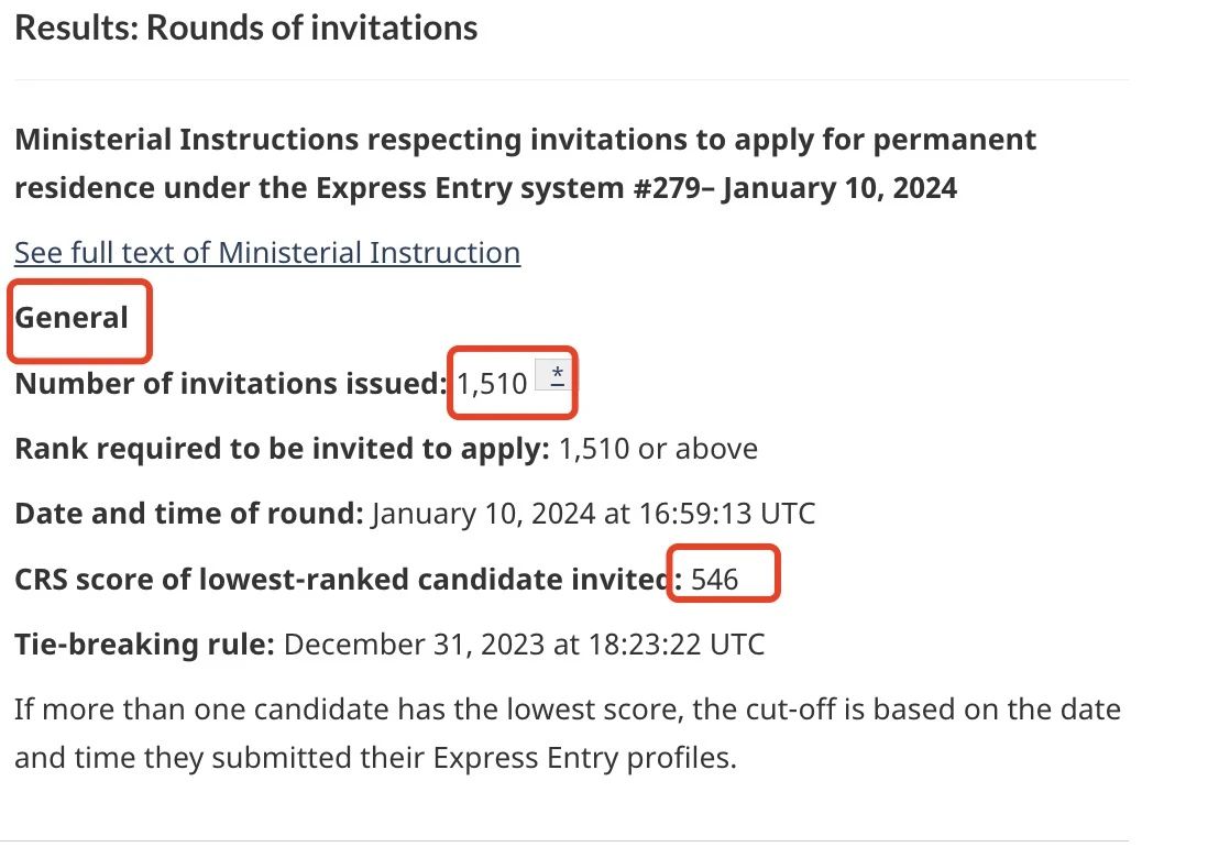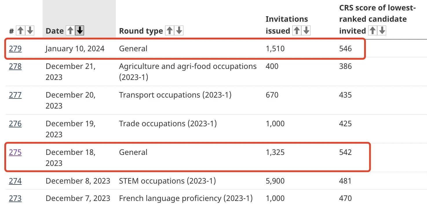 本輪向EE快速通道候選人發(fā)出了1,510份邀請,抽選分?jǐn)?shù)546分,相比上一次全項目抽簽分?jǐn)?shù)上升了4分,本輪抽選為2024開年第一抽,全類別邀請!