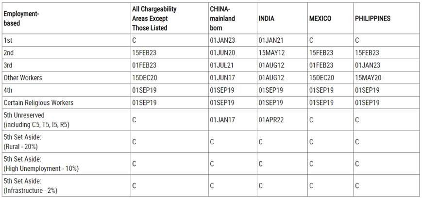 ? EB-5(預(yù)留類別:鄉(xiāng)村、高失業(yè)率、基建):無排期。