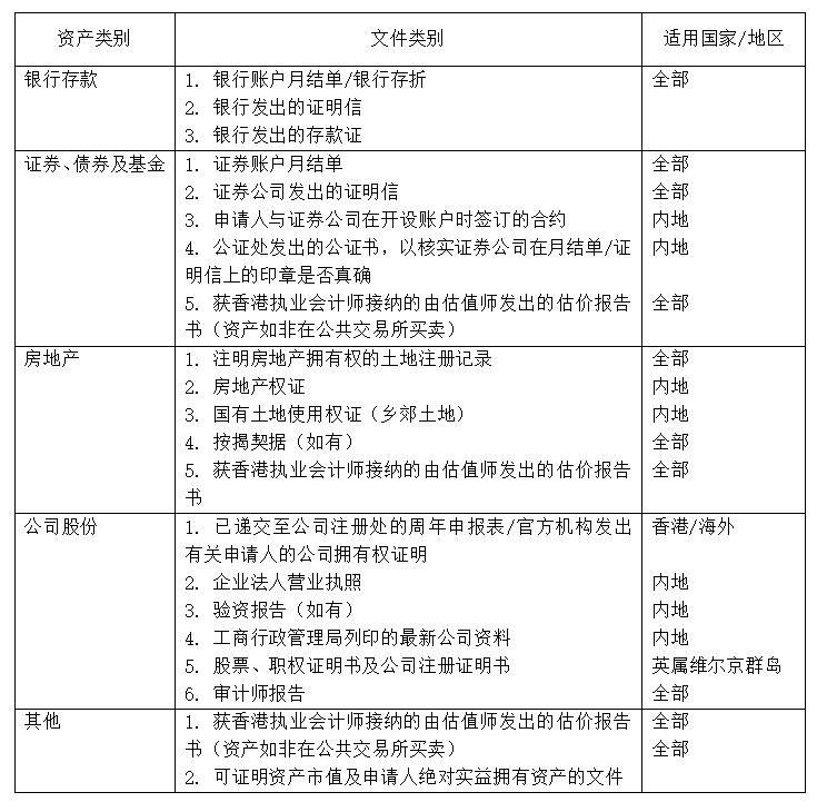 3. 獲許投資資產(chǎn)類別及檢查的文件類別