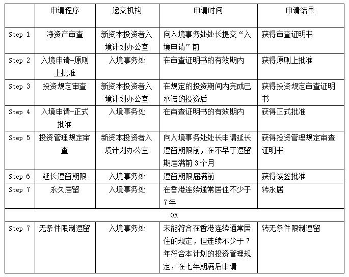 新資本投資者入境計(jì)劃辦公室專責(zé)統(tǒng)籌有關(guān)申請的財(cái)務(wù)審查事宜,包括凈資產(chǎn)審查、符合投資規(guī)定和投資管理規(guī)定的審查;入境事務(wù)處則負(fù)責(zé)審批根據(jù)本計(jì)劃所提交的簽證/進(jìn)入許可、延長逗留期限和無條件限制逗留的申請。