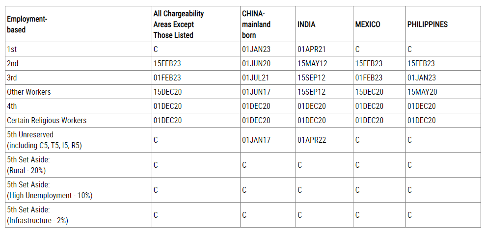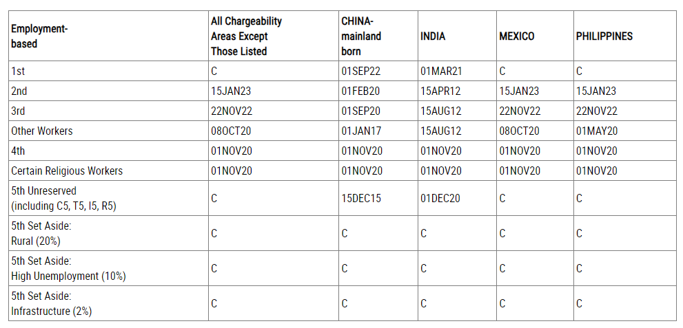 ? EB-1:排期為2023年1月1日,原地踏步;