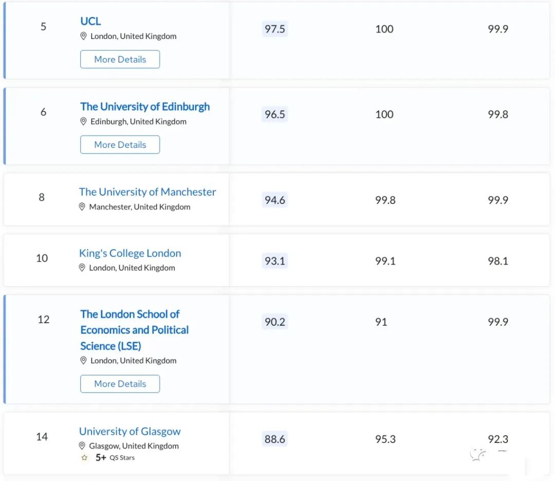 而縱觀2024 QS歐洲大學(xué),英國大學(xué)不僅上榜數(shù)量最多,排名也非??壳?,在歐洲Top10中英國大學(xué)包攬了7席!