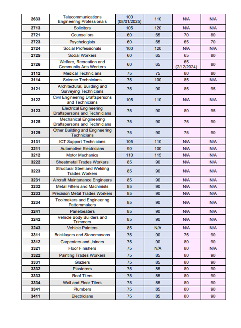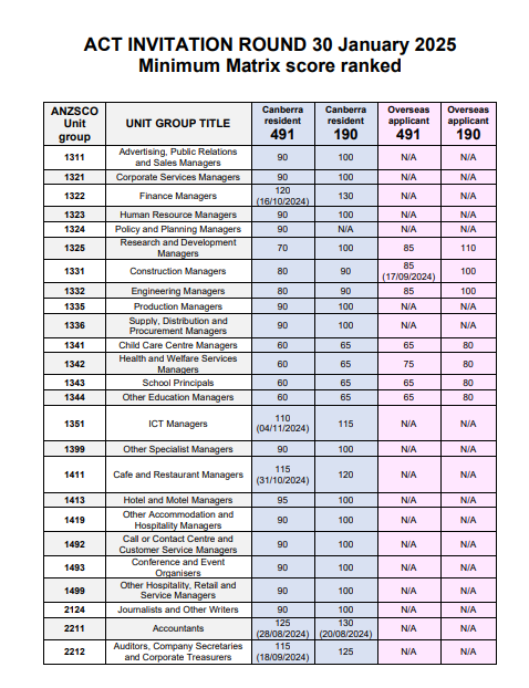 對(duì)于境外申請(qǐng)者(粉紅列)來(lái)說(shuō),有些分?jǐn)?shù)并不高,比如研發(fā)經(jīng)理,城市和區(qū)域規(guī)劃師,電氣工程繪圖員,技術(shù)員、環(huán)境科學(xué)家這類的,Matrix打分都還可以?;旧?0分以下的,都能申請(qǐng)491。如果之前是在堪培拉讀書留學(xué)過(guò)的申請(qǐng)人,當(dāng)然更有優(yōu)勢(shì)。如果沒(méi)有的話,去旅游個(gè)7天,還能加個(gè)5分,也是一個(gè)加分的好途徑。