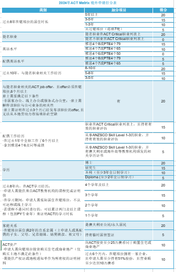 2. Matrix 很多項(xiàng)打分,都強(qiáng)調(diào)了與堪培拉的聯(lián)系。例如有親屬,有投資,接受教育等,這些都是短時(shí)間很難達(dá)到的。但是有一個(gè)加分,相對(duì)來(lái)說(shuō)容易,就是去堪培拉連續(xù)居住7個(gè)晚上,可以加5分,這對(duì)于積蓄充足家庭還是比較簡(jiǎn)單的。