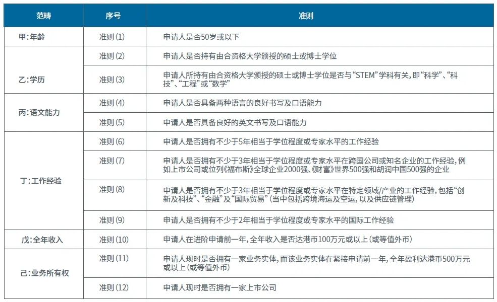自去年6月截至2025年6月底,共接獲44,324宗申請、當(dāng)中9,049宗獲批,獲批率20.4%。非常明顯,在新優(yōu)才準(zhǔn)則實(shí)行后,申請數(shù)量和獲批數(shù)量都大大地減少了?,F(xiàn)行的新優(yōu)才準(zhǔn)則,需要以下12項(xiàng)準(zhǔn)則符合6項(xiàng)。如符合要求,申請?jiān)皆缭胶谩?/span>