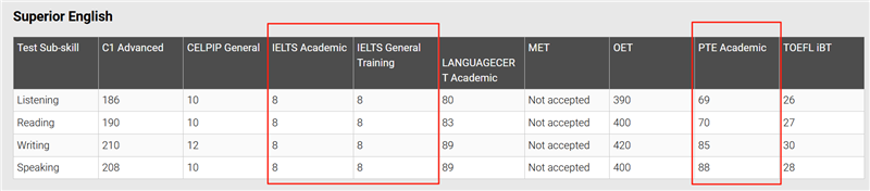 新政過渡期:新政策從2025年8月7日開始實施,在這之前參加考試的,只要成績在3年有效期內(nèi),然會按照舊的分?jǐn)?shù)對應(yīng)英語打分,例如雅思7分對應(yīng)PTE每項65分,雅思8分對應(yīng)PTE每項79分。