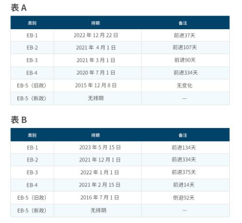 同時,EB3類別(技術勞工及專業(yè)人才),表A前進90天至2021年3月1日,表B也大幅跳躍375天到2022年1月1日。